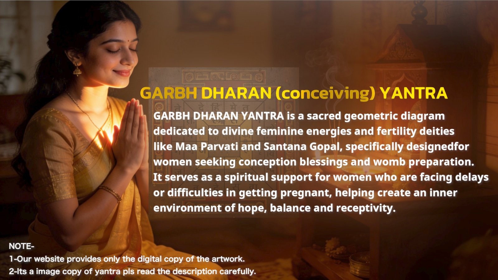 “Garbh” signifies womb or offspring, while “Dharan” embodies nurturing conception—merging with Gopal’s playful, protective child Krishna energy. This yantra purifies karmic blocks, harmonizes couple’s energies, and invites divine grace to transform longing into fulfillment.